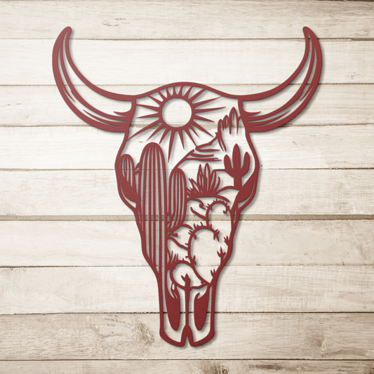 Southwest Style Cow Skull Metal Wall Decor Desert Western Art Outdoor Steel Made in USA