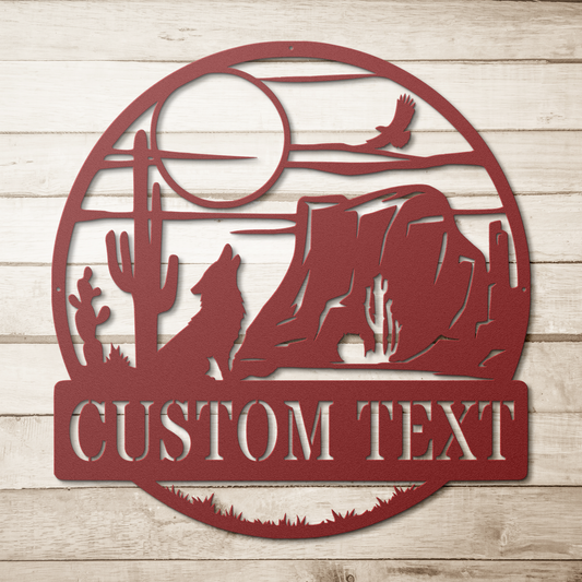 Cactus Desert Coyote Moon Metal Wall Art Southwest Cactus Decor